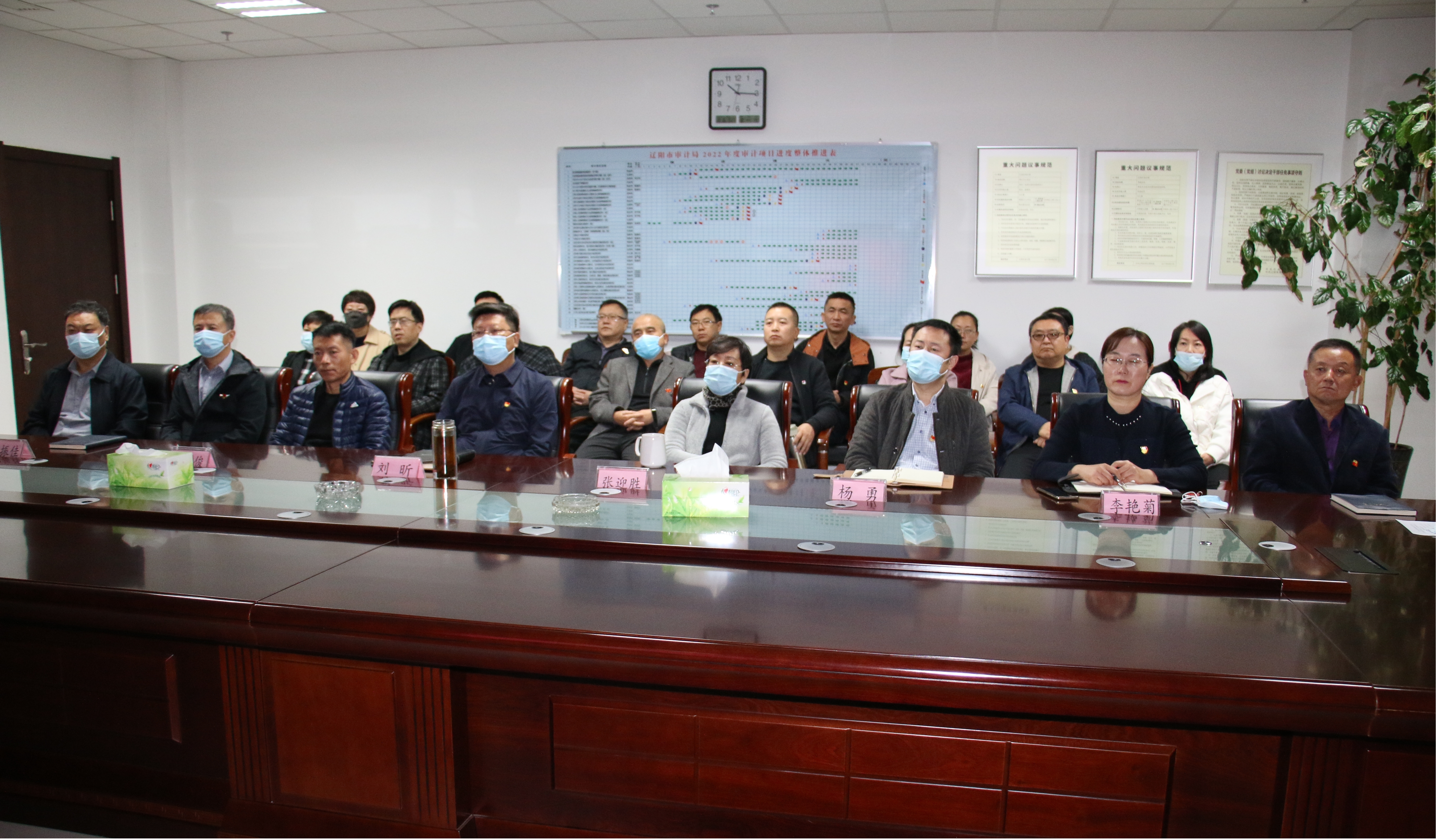 沈阳市审计局认真组织收听收看党的二十大开幕会,局党组成员、综合处室负责人在局机关三楼会议室集中收听收看大会开幕盛况,聆听习近平同志代表第十九届中央委员会所作的报告;其余170名党员干部在社区防疫点位、机关办公室等地点进行收听收看。局党组要求,全体审计干部要切实把思想认识统一到大会精神上来,深刻领悟“两个确立”的决定性意义,增强“四个意识”、坚定“四个自信”、做到“两个维护”,坚决在思想上政治上行动上同以习近平同志为核心的党中央保持高度一致;要深入学习贯彻落实党的二十大精神,与贯彻落实习近平总书记在辽宁、沈阳考察时的重要讲话精神相结合,让党的二十大精神在全市审计系统落地生根、开花结果。大家纷纷表示,要切实把思想和行动统一到党的二十大精神上来,扎实做好审计各项工作,为奋力推动新时代沈阳全面振兴全方位振兴实现新突破、加快推进国家中心城市建设贡献审计力量。